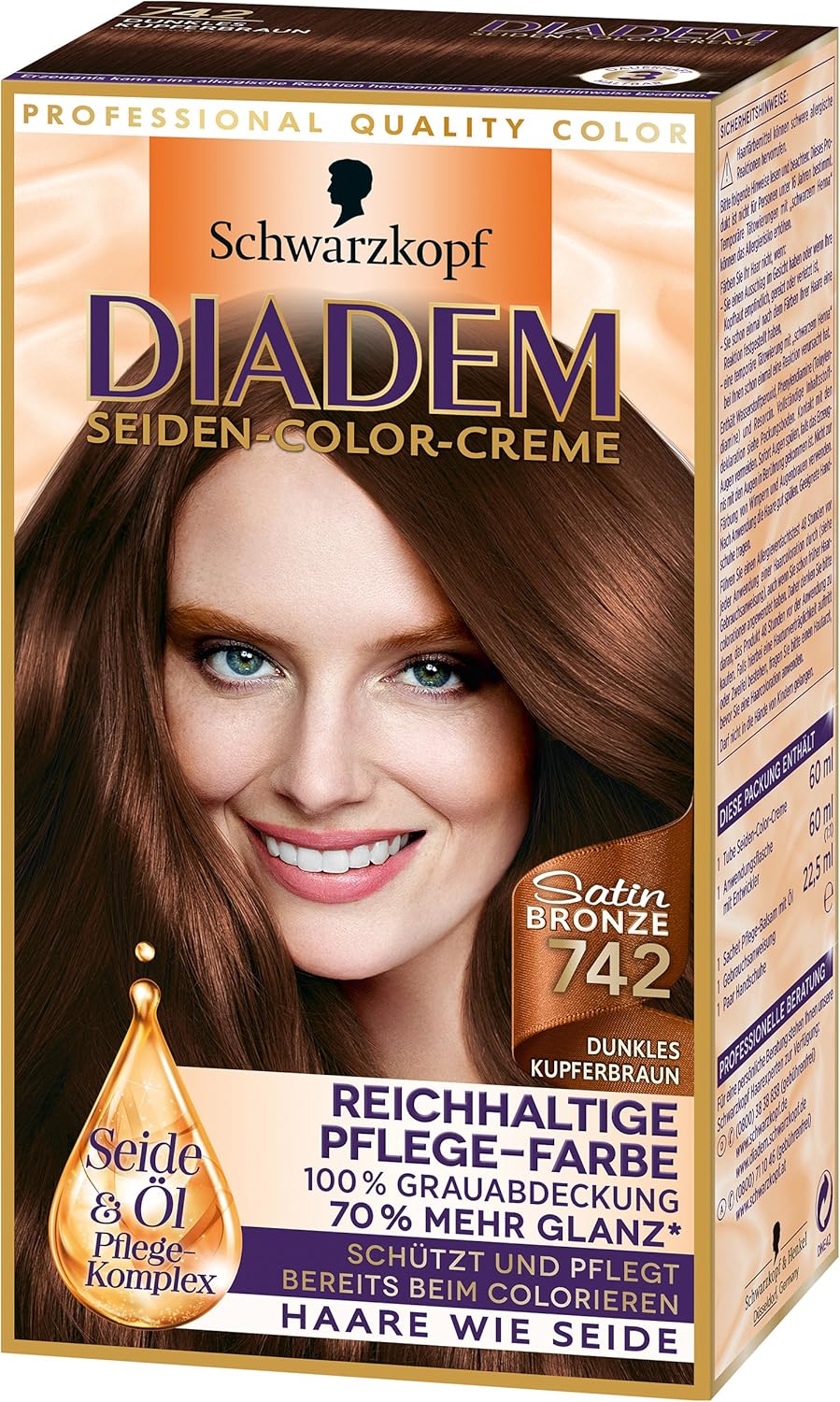 Diadem Seiden Color Creme 742 Dunkles Kupferbraun Satin Bronze Stufe
